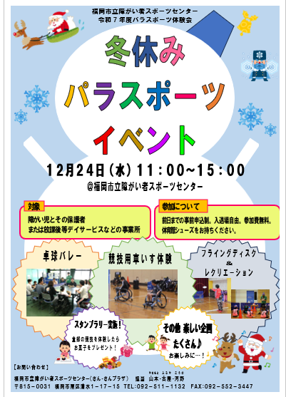 第10回福岡ボッチャフェスタ パラボッチャ大会 開催のお知らせ 令和7年5月11日(日) 実施要項などの詳細はこちらをクリック |