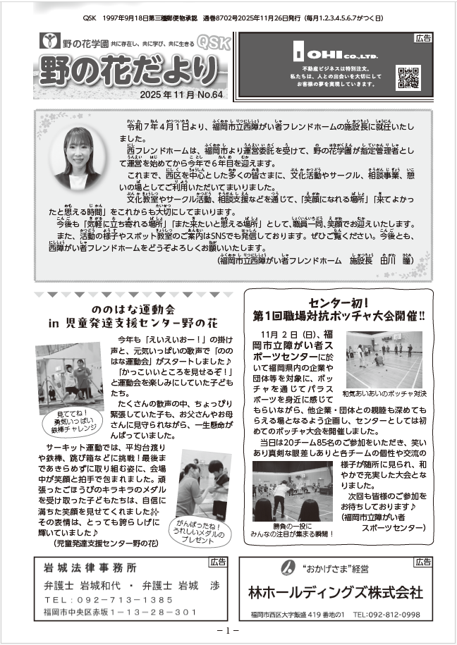法人広報紙「野の花だより」 | 社会福祉法人 野の花学園